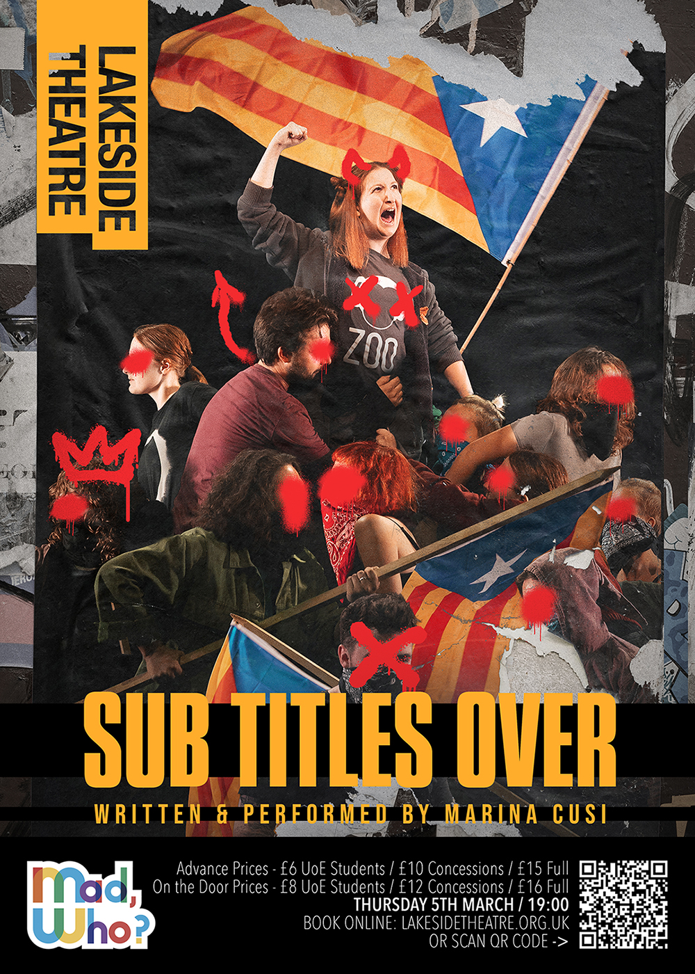 Mad, Who? is an emerging multicultural theatre company that creates multilingual captioned work focusing on human rights issues explored through a feminist lens. The company, created by Catalan multidisciplinary artist Marina Cusí in 2022 with the support of the University of Essex’s Innovation Centre and start-ups team, premiered its first show, The ’S’ Is Silent in April 2023 at The Pleasance Theatre in London, and won the FesTeLoFF 2022 Audience Award for said production at FesTeLõn Festival’s 10th edition. Mad, Who? was an OFFIES Awards 2024 finalist on their Best Online Production Category for the livestream of The ‘S’ Is Silent at The Space Theatre, and an OffFest Award finalist at the OFFIES 2025. Sub Titles Over was awarded the ‘GJD Reviews Award’ at the Colchester Fringe 2024.